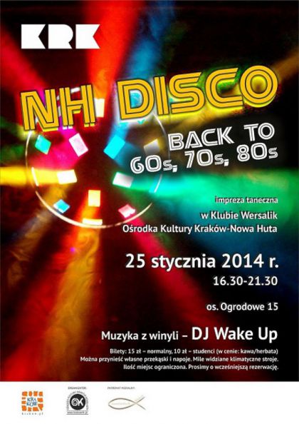 | Potacwka dla studentw i dorosych, utrzymana w klimacie muzycznym lat 60, 70 i 80-tych. Jest to propozycja dla osb, ktre chc spdzi wieczr przenoszc si w sentymentalny klimat tamtych lat. Parkiet rozgrzeje DJ Wake Up, grajcy najlepsze hity z pyt winylowych. Daj si ponie szalonemu klimatowi i spd z nami ten wieczr. Klub Wersalik Orodka Kultury Krakw-Nowa Huta gwarantuje gorc atmosfer i zimne napoje w bufecie. Mile widziane s(...) ... więcej » |