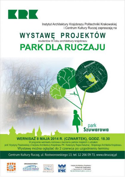 Instytut Architektury Krajobrazu Politechniki Krakowskiej, Centrum Kultury "Ruczaj" oraz studenci III roku architektury krajobrazu maj zaszczyt zaprosi mieszkacw osiedla Ruczaj oraz wszystkich zainteresowanych na wystaw projektw parku na Ruczaju.