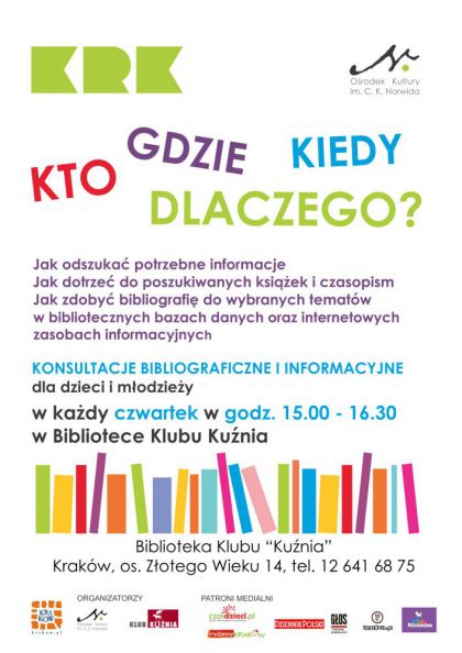 | Biblioteka Klubu Kunia Orodka Kultury im. C. K. Norwida, os. Zotego Wieku 14, Krakw. |