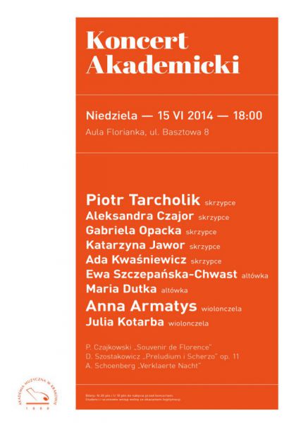 W ramach Koncertw Akademickich organizowanych przez Akademi Muzyczn w Krakowie, w najblisz niedziel 15 czerwca 2014 o godz. 18:00 w Auli Florianka (ul. Basztowa 8) wystpi krakowscy kameralici: