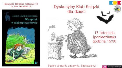 W cyklu: Tu czytamy Biblioteka zaprasza na spotkanie Dyskusyjnego Klubu Ksiki dla Dzieci, podczas ktrego bdzie czytana i omawiana ksika Angeli Sommer Bodenburg Wampirek w niebezpieczestwie. Angela Sommer Bodenburg to popularna niemiecka autorka ksiek dla dzieci i malarka. Seria ksiek o wampirku Rydygierze i Antosiu jest najbardziej znana w jej dorobku.