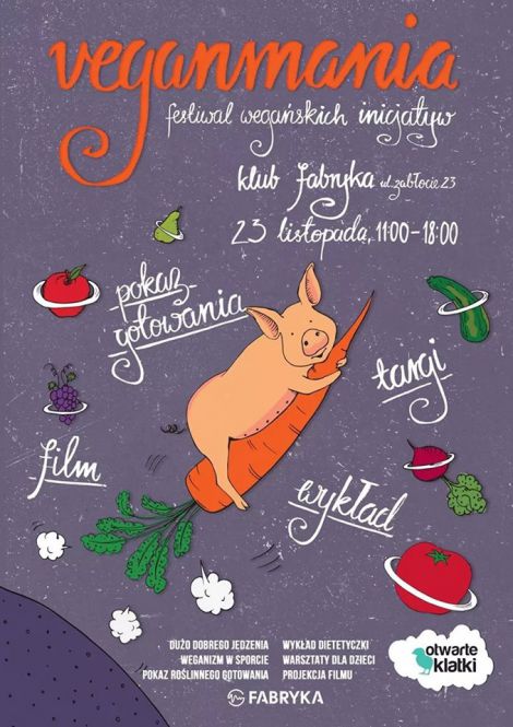 Z nieukrywan radoci zapraszamy Pastwa na pierwsz krakowsk edycj festiwalu inicjatyw wegaskich Veganmania, ktra odbdzie si w niedziel, 23 listopada 2014 roku w klubie Fabryka w Krakowie.