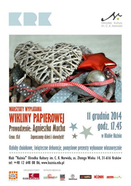 Zapraszamy na witeczne warsztaty wyplatania wikliny papierowej kady bdzie mg wasnorcznie stworzy niepowtarzalne ozdoby choinkowe, witeczne dekoracje czy pomysowe prezenty dla bliskich.
