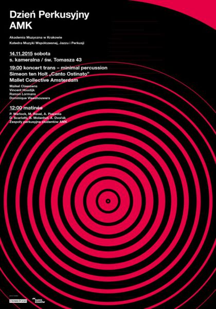 | Katedra Muzyki Wspczesnej, Jazzu i Perkusji po raz kolejny zaskoczy swoich sympatykw. A to ju w sobot 14 listopada o godzinie 19:00, kiedy to zabrzmi utwr ciekawostka, minimal perkusyjny popularny w Holandii, Canto Ostinato Simeona Ten Holta. Utwr trwa bdzie ok. 70 minut, a publiczno moe na koncert przyj z poduszkami, by podda si jego kontemplacji. Wstp wolny.(...) ... więcej » |
