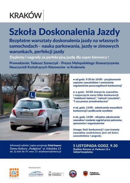 Szkoa Doskonalenia Jazdy to bezpatne warsztaty jazdy na wasnych samochodach - nauka parkowania, jazdy w zimowych warunkach, perfekcji jazdy oraz przedstawienie podstawowej pomocy przedmedycznej w wypadkach komunikacyjnych.