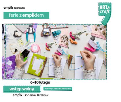Zapraszamy na warsztaty artystyczne do Empik Kazimierz w drugim tygodniu ferii. Warsztaty s bezpatne. Zapisy na warsztaty pod nr tel.: 603 114 165.