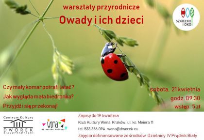 | Szkieko i Oko zajmie si skomplikowan kwesti przepoczwarzania si owadw i zrobi to w sposb jak zwykle przystpny, zabawny i zajmujcy. Zapraszamy wszystkich modych przyrodnikw. Koszt udziau 5 z/osoba. Zajcia dofinansowane przez Rad Dzielnicy IV Prdnik Biay. Zapisy do pitku. (...) ... więcej » |