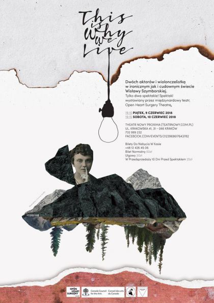 Midzynarodowy fizyczny teatr, Open Heart Surgery Theatre prezentuje 14 wierszy Wislawy Szymborskiej w trzech jzykach (angielskim, francuskim i polskim); czc poezj z teatrem, muzyk na ywo i collage.Jest to wyjtkowa wsppraca midzy kanadyjsk grup teatraln a francuskim LEnfurmerie, gdzie dwch aktorw i wiolonczelistka mierzy si ze zoonym wiatem Szymborsk(...)  ... więcej »