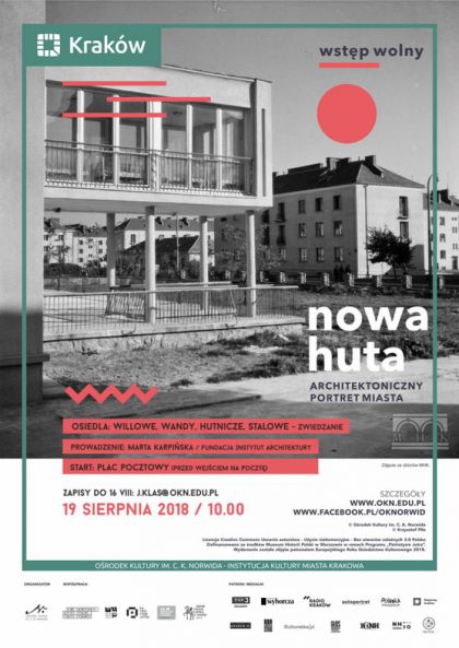Zwiedzanie najstarszych osiedli Nowej Huty, pierwszych blokw prefabrykowanych i dawnego Domu Modego Robotnika w ramach projektu Nowa Huta architektoniczny portret miasta. Prowadzenie: Marta Karpiska (Fundacja Instytut Architektury). Zapisy do 22 VIII. Wstp wolny.