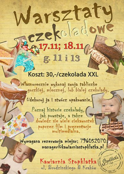 Kawiarnia Stopklatka zaprasza wszystkie dzieci na warsztaty, na ktrych przygotuj dla swoich bliskich (albo dla siebie) autorskie czekolady!