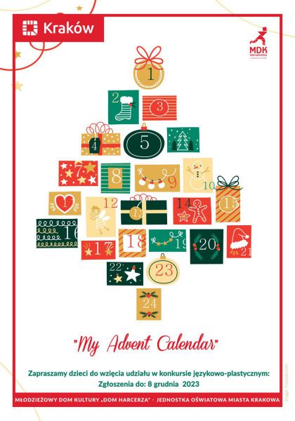 Info: https://www.mdk-dh.krakow.pl/konkursy/1294-konkurs-my-advent-calendar-2023