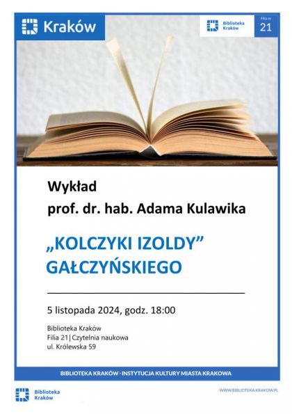 Spotkanie z prof. dr. hab. Adamem Kulawikiem, który poprowadzi wykład z dyskusją w kontekście obchodów upamiętniających Powstanie Warszawskie. Spotkanie przygotowane na podstawie utworu Konstantego Ildefonsa Gałczyńskiego Kolczyki Izoldy.(...)  ... więcej »
