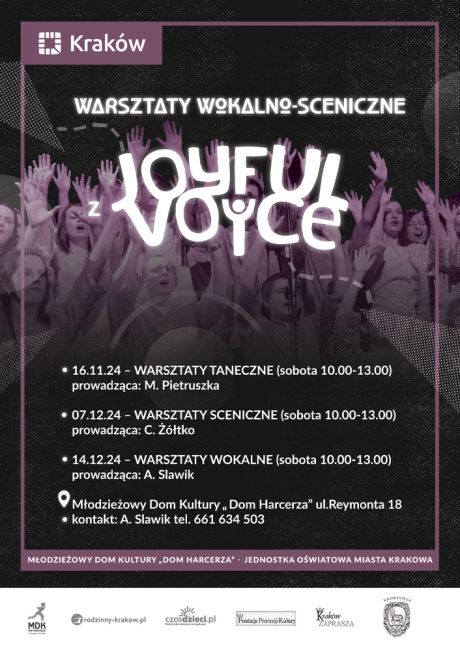 Zapraszamy na serię warsztatów w Młodzieżowym Domu Kultury „Dom Harcerza” Reymonta 18 razem z „Joyful Voice”!