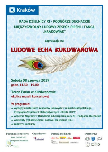 Na Ludowe Echa Kurdwanowa zaproszeni s nie tylko mieszkacy dzielnicy XI Miast Krakowa - Podgrze Duchackie, a take wszyscy mionicy i pasjonaci folkloru. Honorowy patronat nad wydarzeniem obja Dzielnica XI Miasta Krakowa - Podgrze Duchackie.