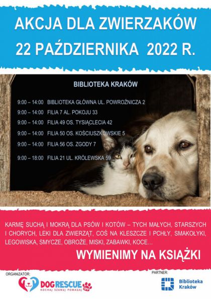 W tych miejscach będzie trwała zbiórka darów dla bezdomnych psów i kotów, a w zamian za dar dla zwierzaka, będzie można wrócić do domu z wybraną książką.