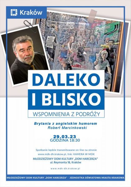 Cykl „Daleko i blisko” to niezwykłe spotkania z podróżnikami, fotografami, osobami ciekawymi świata i ludzi. Zapraszamy osoby, które chcą podzielić się swoimi wspomnieniami z podróży. Prezentujemy zdjęcia z wypraw, a zaproszeni prelegenci wzbogacają te pokazy swoimi opowiadaniami. Na naszych spotkaniach nie brakuje również doznań kulinarnych, gdyż opowieści są dodatkowo okraszone poczęstunkiem związanym z omawianym miejscem czy regionem. Poczęstunek ten sponsoruje Dzielnica V – Krowodrza.