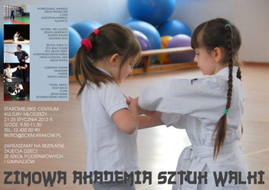 Staromiejskie Centrum Kultury Młodzieży zaprasza na zajęcia feryjne ZIMOWEJ AKADEMII SZTUK WALKI od 21-25 stycznia 2013 r. w godz. 9.50-11.30