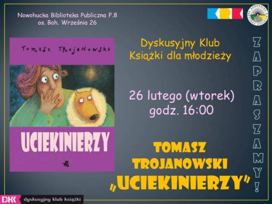 Najbliższe spotkanie w cyklu: "Tu czytamy" powięcone będzie ksišżce "Uciekinierzy" Tomasza Trojanowskiego, laureata Nagrody Literackiej im. Kornela Makuszyńskiego. W ksišżce dziejš się rzeczy niezwykłe. Pingwin w zamrażarce, słoń na przystanku, kosmici, którzy zgubili swój talerz i historia kryminalna na dokładkę? tematów do dyskusji podczas kolejnego spotkania nie zabraknie.