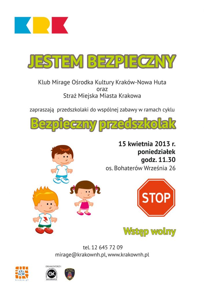 Cykliczna impreza dla przedszkolaków z zakresu bezpieczeństwa. Najbliższe spotkanie odbędzie się pod hasłem Jestem bezpieczny. Współorganizatorem cyklu jest Straż Miejska Miasta Krakowa.