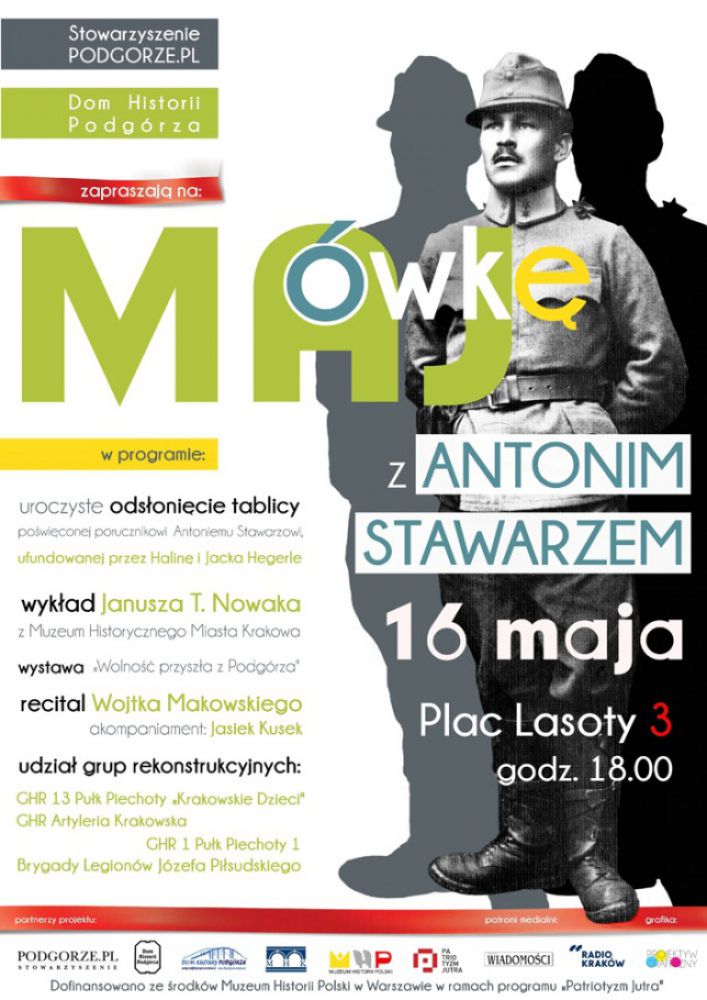 Ten rodzinno-patriotyczny majowy wieczór jest drugim wydarzeniem powięconym pamięci osoby zwišzanej z Podgórzem. W zeszłym roku Jerzy Donimirski ufundował tablicę powięconš pamięci wybitnego farmaceuty podgórzanina Michała Ludwika Dobrowolskiego. Fundatorami tablicy powięconej Antoniemu Stawarzowi sš Halina i Jacek Hegerle, a autorem projektu Bogdan Czesak.
