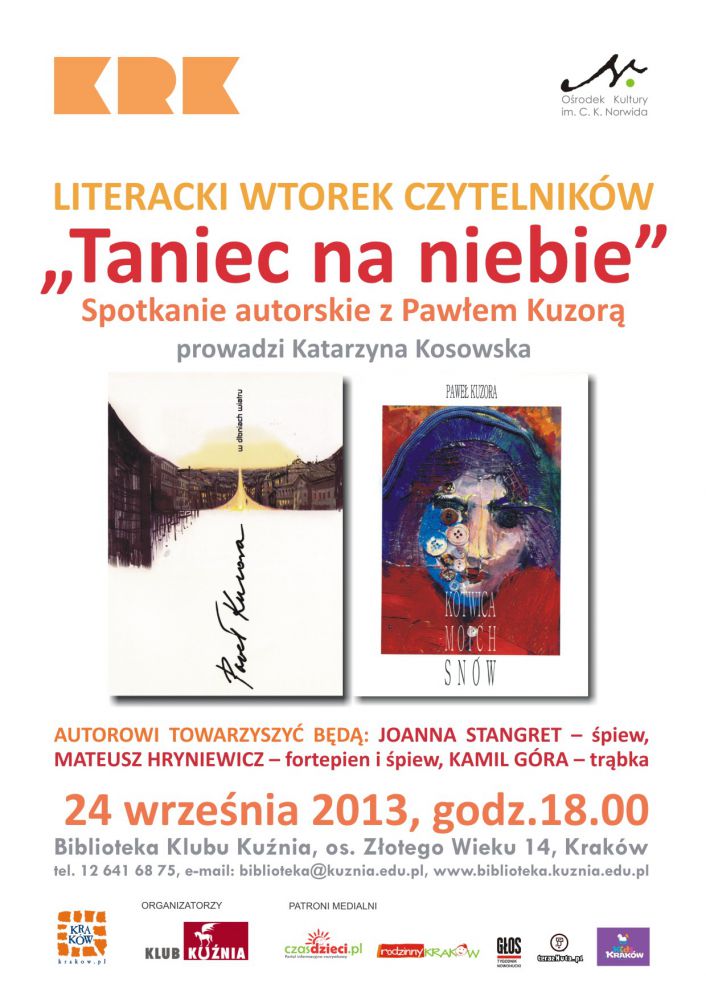 W ramach Literackich Wtorków Czytelnika serdecznie zapraszamy do Klubu Kunia Orodka Kultury im. C. K. Norwida na spotkanie literackie z Pawłem Kozurš autorem ksišżki pt. Taniec na niebie.
