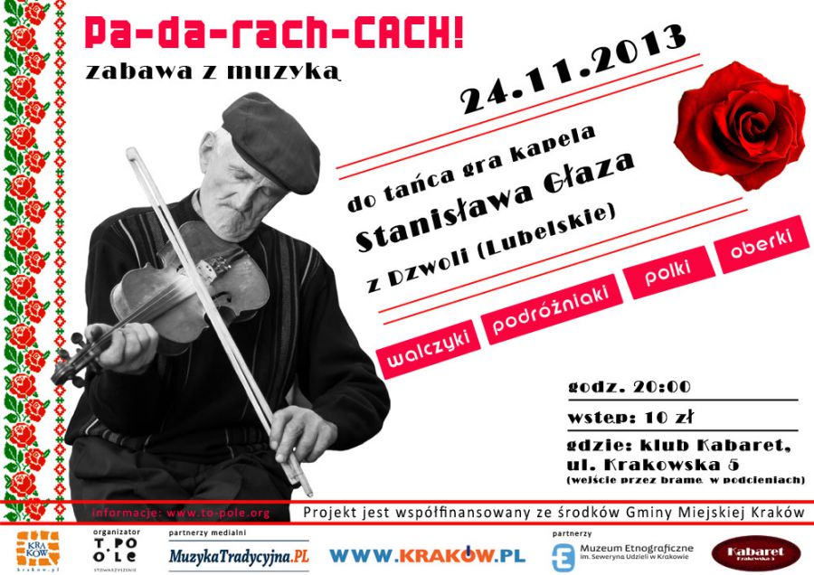 Muzyka wiejska przez lata pełniła bardzo praktycznš rolę pozwalała tańczyć. Poprzez cykliczne zabawy taneczne organizowane w Krakowie wracamy do tej tradycji gramy do tańca i spontanicznej zabawy przy muzyce na żywo.