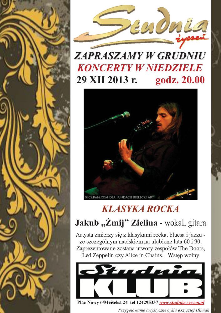 Artysta zmierzy si z klasykami rocka, bluesa i jazzu - ze szczeglnym naciskiem na ulubione lata 60 i 90. Zaprezentowane zostan utwory zespow The Doors, Led Zeppelin czy Alice in Chains. Wstp wolny