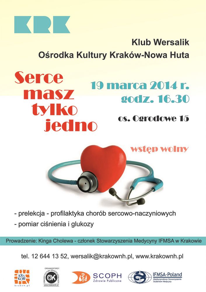 Klub Wersalik Oœrodka Kultury Kraków-Nowa Huta (os. Ogrodowe 15) zaprasza na prelekcję profilaktycznš dotyczšcš prewencji chorób sercowo-naczyniowych, która odbędzie się 19 marca o godz. 16.30.