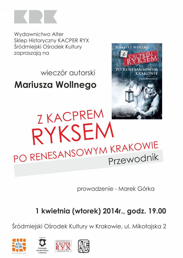 Szesnastowieczny Kraków widziany oczami Kacpra Ryxa, powieciowego bohatera znanego czytelnikom powieci Mariusza Wollnego. Historia poszczególnych miejsc i budynków i powišzanie ich z dzisiejszym miastem, opisy wydarzeń historycznych, które kształtowały i zmieniały ówczesny Kraków, nie brak tu także awanturniczych i barwnych, acz prawdziwych wydarzeń, których nie znajdziecie w innych ksišżkach. Ale najlepiej oddać głos autorowi: