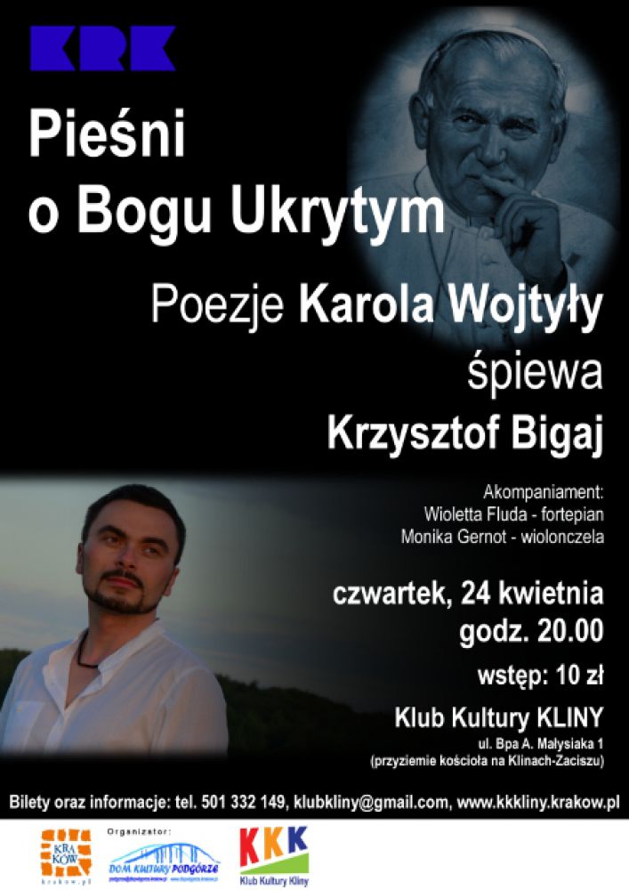 Poezje Karola Wojtyy piewa Krzysztof Bigaj, Wioletta Fluga - fortepian, Monika Gernot- wiolonczela