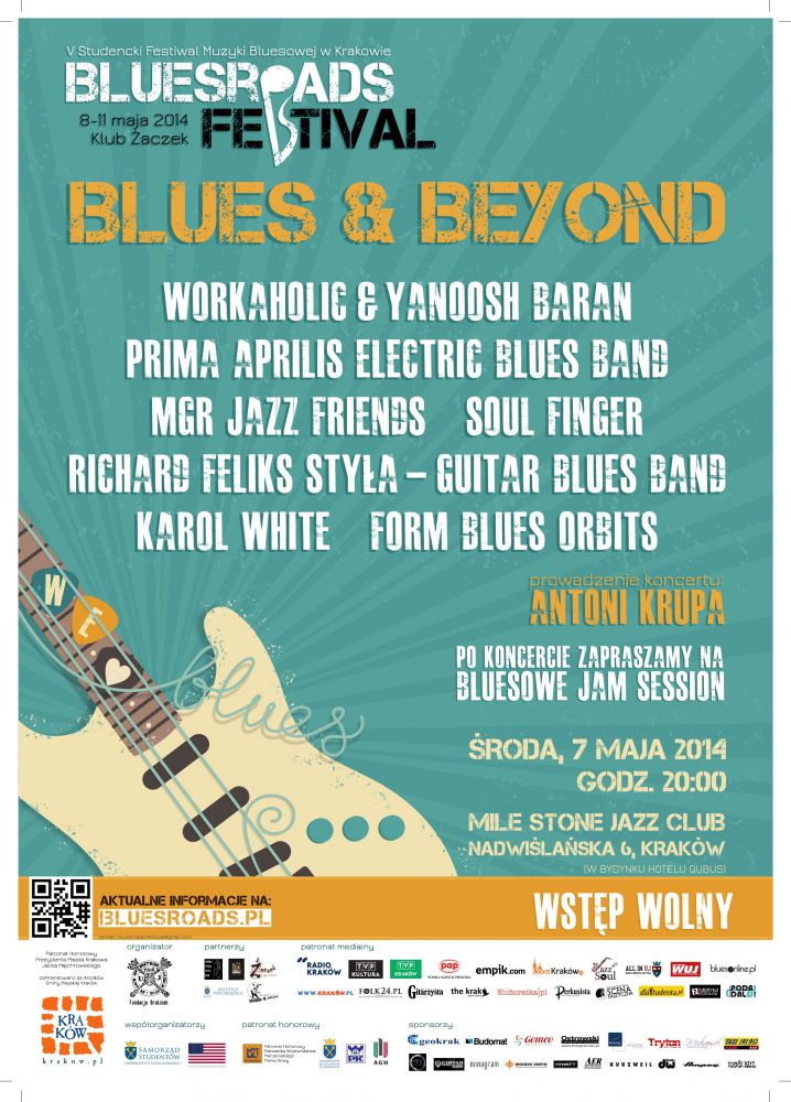 A co w trakcie koncertu usłyszycie poza bluesem? Tego dzisiaj nikt nie jest w stanie przewidzieć. Koncert zwieńczony będzie występem znakomitego gitarzysty Ryszarda Feliksa Styły wraz z zespołem w którym wystšpiš Piotr Kosieradzki, Waldemar Gołębski, Radosław Kopeć, Bogusław Mietniowski i Sławomir Berny. A więc zabierz szwagra, zabierz kuzynkę i przyjd 7ego maja do klubu Milestone na koncert Blues & Beyond, na prolog festiwalu Bluesroads.