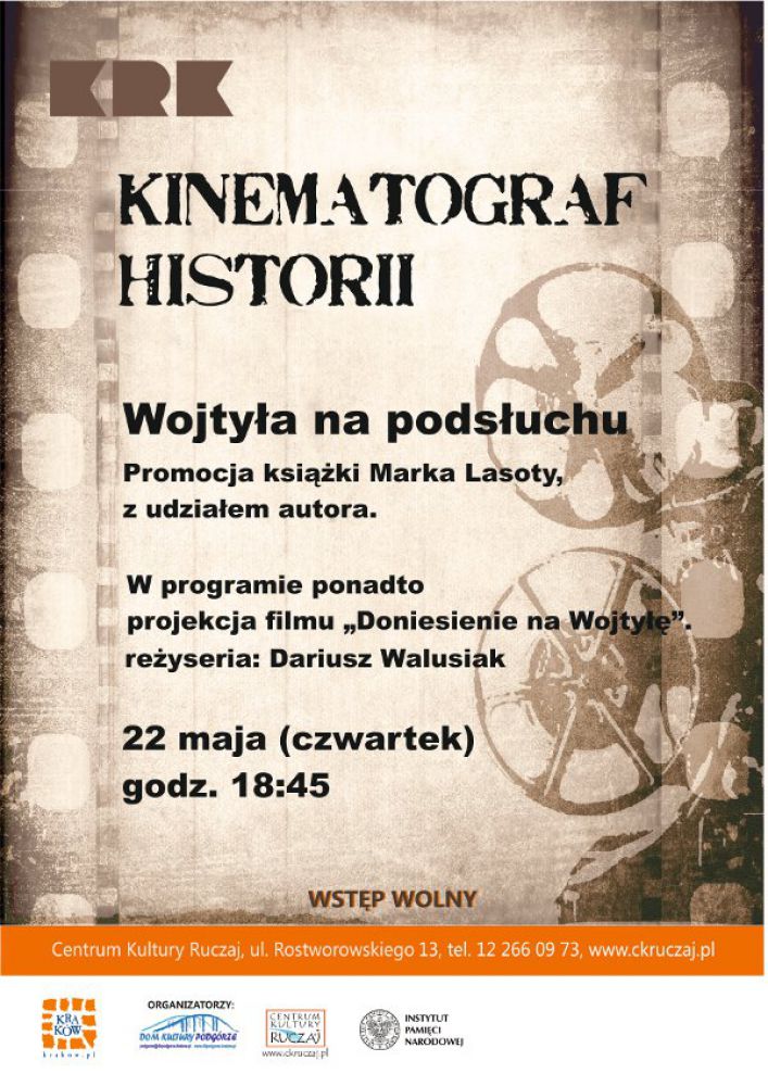 Spotkanie odbędzie się w ramach cyklu Kinematograf Historii w Centrum Kultury "Ruczaj" organizowanego we współpracy z Oddziałem Instytutu Pamięci Narodowej w Krakowie.