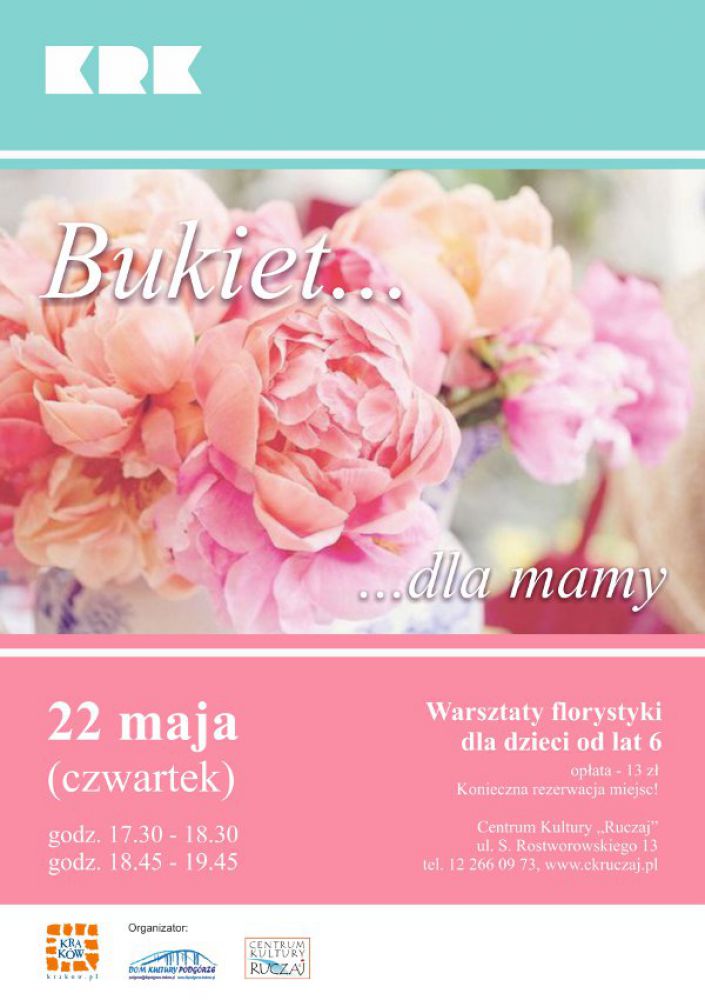Zapraszamy dzieci od 6 lat na warsztaty florystyki, podczas ktrych bdzie mona stworzy oryginalny bukiet z okazji Dnia Matki.