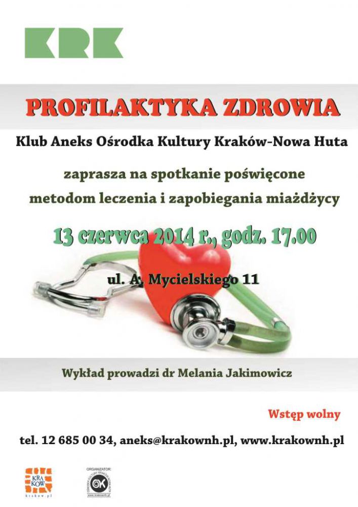 13 czerwca 2014 r. o godz. 17.00 wykład poprowadzi dr Melania Jakimowicz. Warto wzišć w nim udział, żeby zadbać o swoje zdrowie.