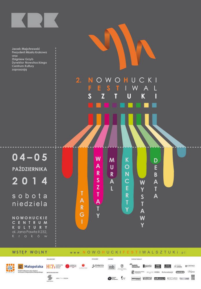 W programie 2. Nowohuckiego Festiwalu Sztuki, który odbędzie się w dniach 4-5 padziernika 2014 roku na terenie Nowohuckiego Centrum Kultury, znalazły się: