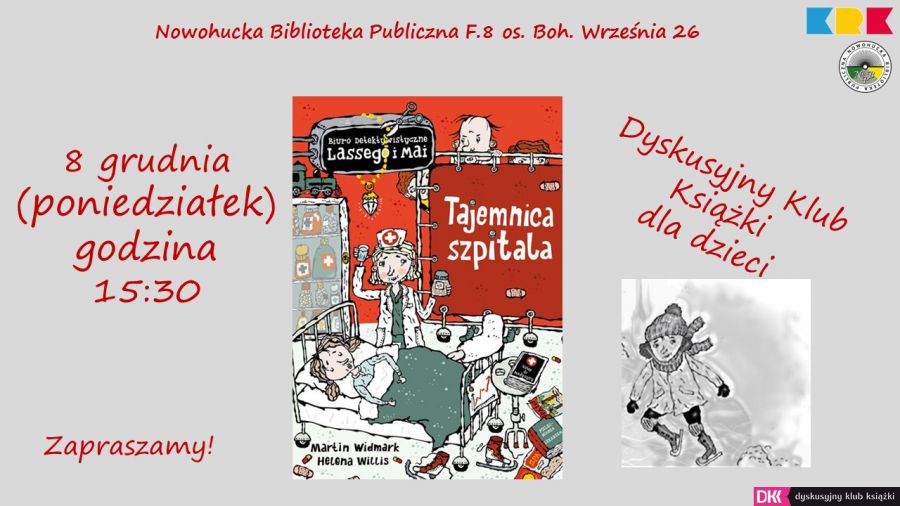 Filia nr 8 zaprasza na spotkanie Dyskusyjnego Klubu Ksiki dla Dzieci w cyklu: Tu czytamy. Grudniowe spotkanie upynie pod znakiem kryminalnej zagadki, ktr bd rozwizywa niezawodni detektywi bohaterowie 19 tomu bestsellerowej szwedzkiej serii ksiek dla dzieci Biuro detektywistyczne Lassego i Mai. Kolejne tytuy tej serii od kilku lat wybierane s przez szwedzkie Jury Dziecice ksik roku.