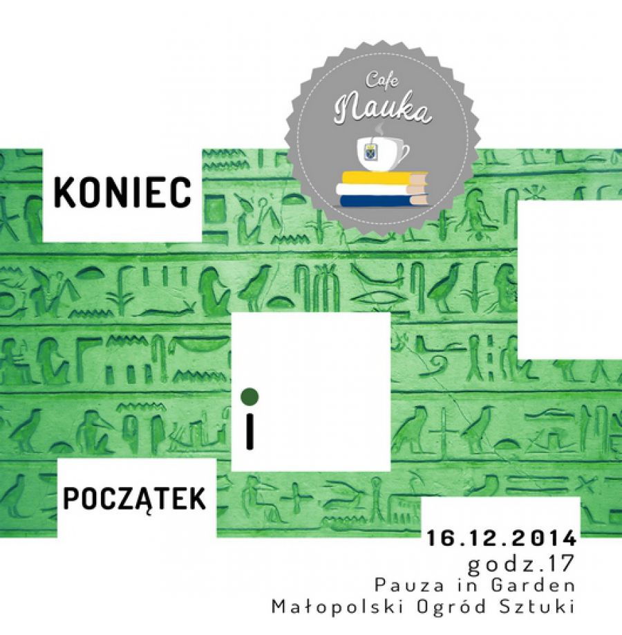 Już niedługo poczštek następnego roku, a zarazem koniec obecnego. Tak zwykle myœlimy: najpierw coœ się zaczyna, a potem w przyszłoœci ma swój koniec. Tymczasem œmiało można odwrócić te relację: coœ musi się skończyć, aby coœ nowego mogło się rozpoczšć. W grudniowym spotkaniu Cafe Nauka (16.12.2014 - wtorek, godz.17, Pauza In Garden, w podziemiach Małopolskiego Ogrodu Sztuki, ul. Rajska, wstęp wolny) sprawdzimy, jak koniec wyznacza poczštek – odwołujšc się do wiedzy o dawnych cywilizacjach oraz do biologicznych podstaw istnienia œwiata natury i człowieka.