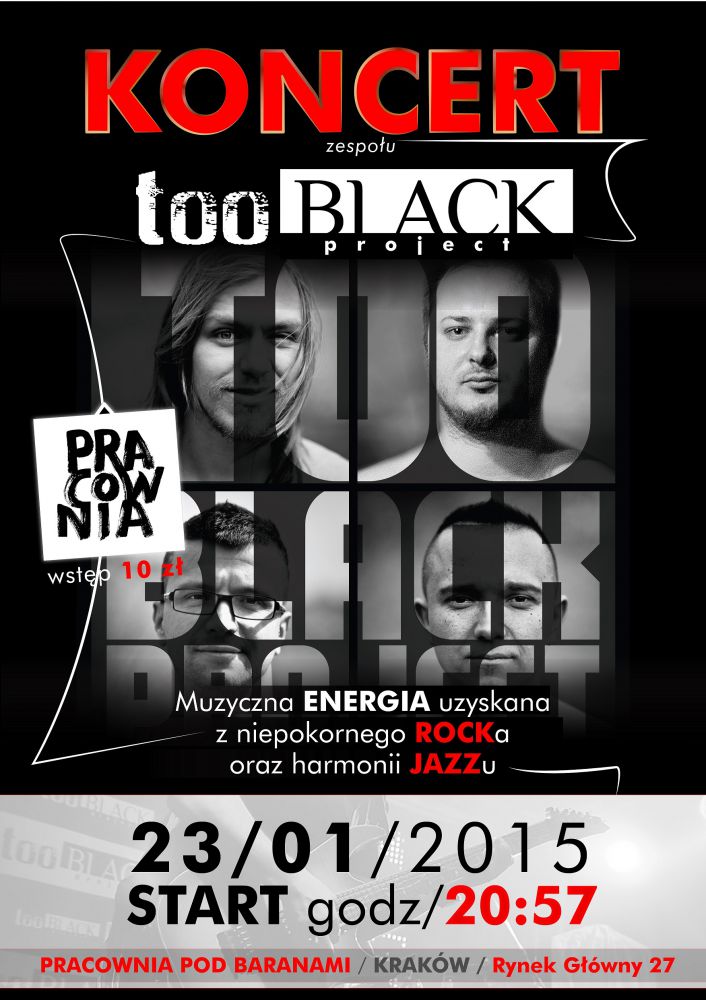 23 stycznia (pištek) w Pracowni Pod Baranami (Rynek Główny 27) odbędzie się kolejny koncert zespołu Too Black Project.