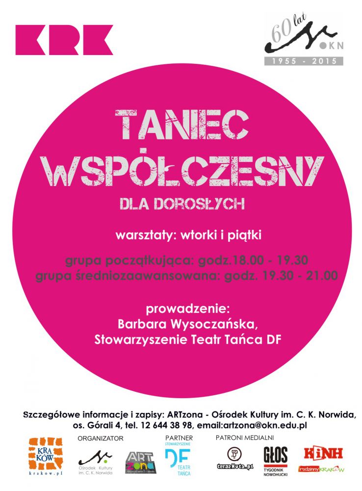 Zapraszamy wszystkich, którzy chcš nauczyć się podstaw tańca współczesnego, rozwinšć wiadomoć ciała i jakoci ruchu, poprawić kondycję i siłę fizycznš, poznać i wykorzystywać możliwoci swojego ciała w pracy scenicznej lub po prostu uwolnić się od stresów codziennoci i zapomnieć się w tańcu.