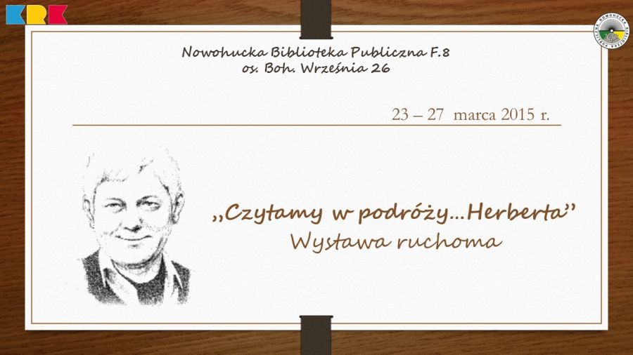 Nowohucka Biblioteka Publiczna w Krakowie włšczyła się w kolejnš edycję ogólnopolskiej akcji organizowanej przez Fundację im. Zbigniewa Herberta „Czytam w podróży…Herberta”. W cyklu: Klub bibliomaniaków Biblioteka zaprasza na wystawę ruchomš poœwięconš Zbigniewowi Herbertowi. Będzie to wystawa ruchoma, co oznacza możliwoœć wypożyczenia wybranych przez siebie ksišżek, a także wymiany opinii na temat twórczoœci cenionego polskiego poety, eseisty, dramaturga.