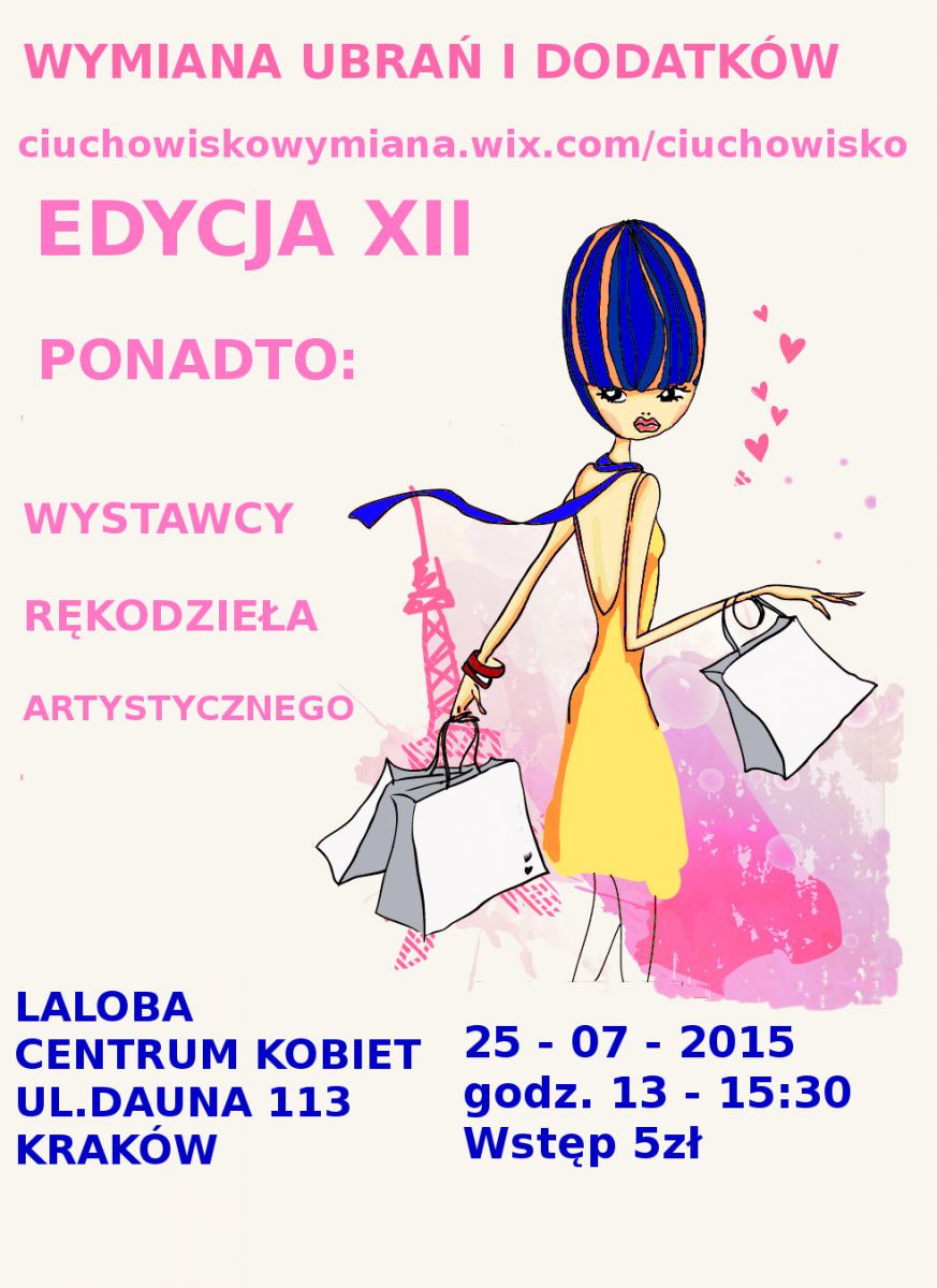 Kolejna edycja szalonej wymiany ubrań i dodatków czyli Krakowskiego Ciuchowiska. Tym razem spotykamy się ponownie w LaLoba Centrum Kobiet na ul.Dauna 113. Na stali duże lusta, dobre wiatło i przestrzeń do wymiany. Wymiana odbywać się będzie na stołach. Na miejscu barek z piciem i jedzonkiem:)