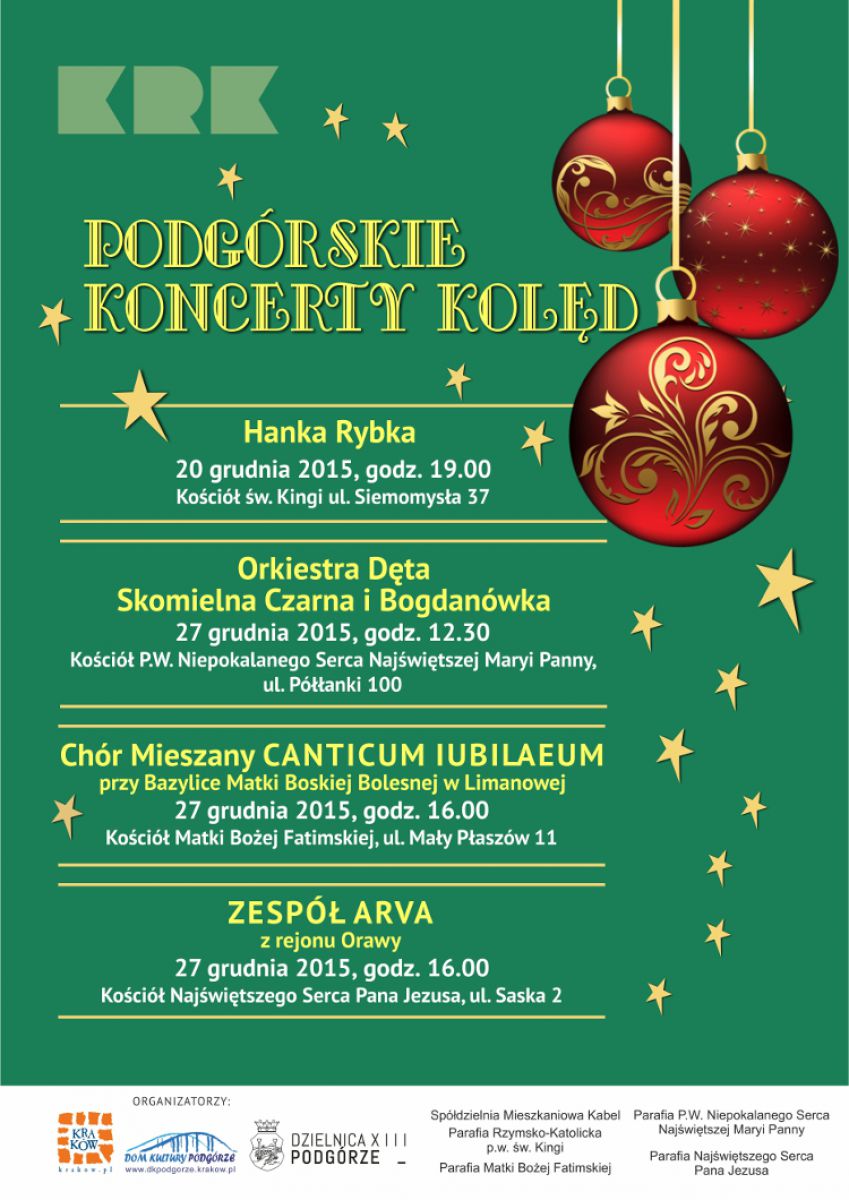 Organizatorzy: Dom Kultury "Podgórze", Rada Dzielnicy XIII, Spółdzielnia Mieszkaniowa Kabel Parafia Rzymsko- Katolicka p.w. œw. . Kingi