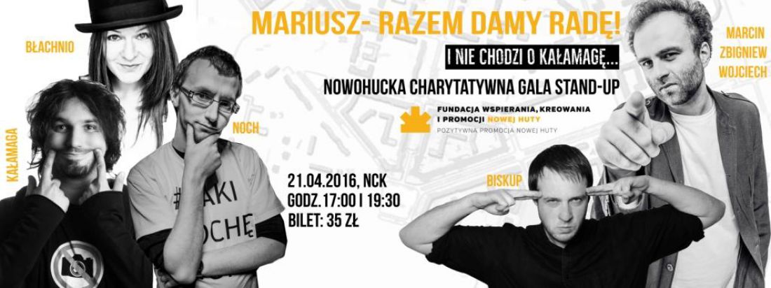 Mariusz, razem damy radę! Nowohucka Gala stand_up: 21 kwietnia 2016 Nowohuckie Centrum Kultury.