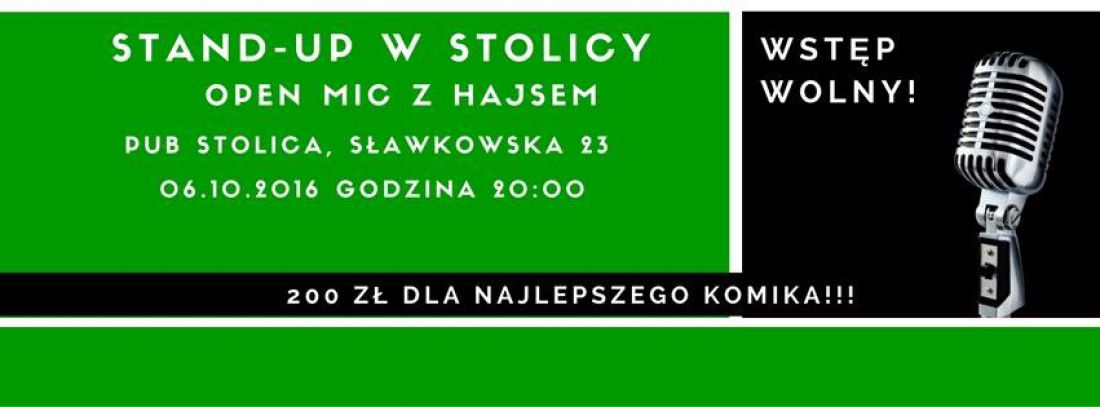 Stolica zaprasza na imprezę typu stand-up! W pierwszej częœci odbędzie się open mic. Każdy, kto ma ochotę, wchodzi na scenę, aby opowiedzieć kawałek stand-upu, historię z życia, anegdotę, bardzo dziwny, zabawny sen (ale jednak nalepiej kawałek stand-upu).