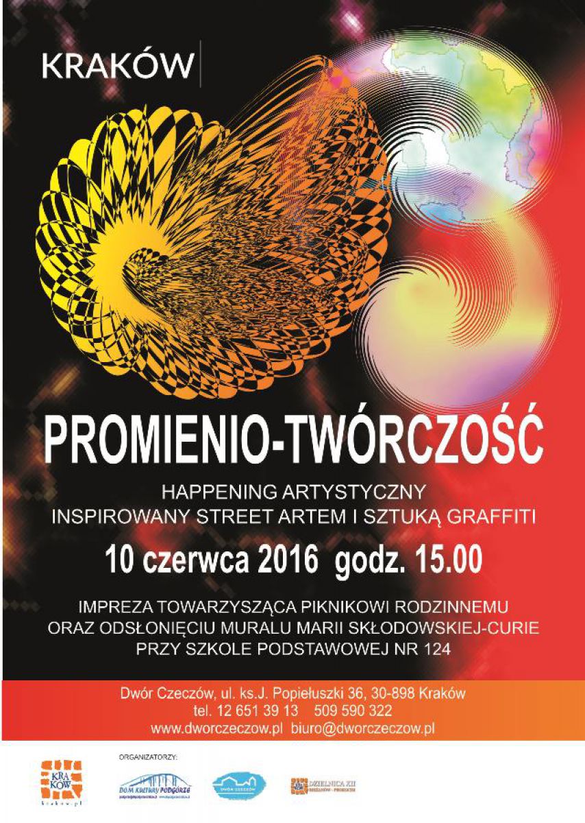 Zapraszamy na happening artystyczny Promienio twórczoć inspirowany street artem i sztukš graffiti. Odbędzie się on 10 czerwca w godz. 16.00 na ternie sp nr 124 przy ul. Weigla 2 w Krakowie w ramach pikniku rodzinnego.