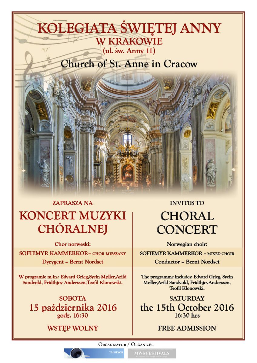 W tym roku, w Krakowie chór wystšpi podczas koncertu Requiem Mozarta w Bazylice Mariackiej,w Krakowie, w niedzielę, 16 padziernika, o godz.20.00.