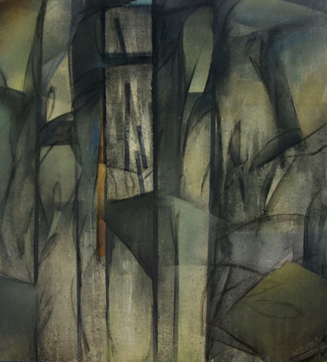 „Kokornakowy blues – to symboliczna nazwa motywów zielnikowych, poœród których dominuje kokornak. W letnie upalne dni jego gigantyczne liœcie tworzš gęstš powłokę altany, jakby chłodnej jaskini, w której można się schronić przed promieniami słonecznymi. Kokornak tworzy swoje formy biologiczne z rozmachem, który inspiruje do ekspresyjnych i szkicowych, niewyspekulowanych działań malarskich”. Lucjan Orzech