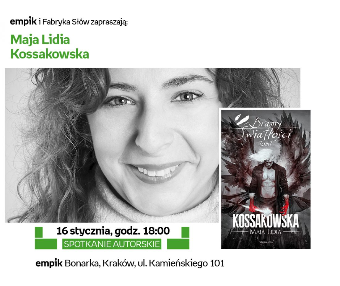 Maja Lidia Kossakowska, jedna z najbardziej poczytnych pisarek fantasy w Polsce powraca w œwiat aniołów, demonów, ciemnoœci i intryg. Cykl „Zastępy anielskie” po szeœciu latach oczekiwań doczekał się kontynuacji. „Bramy Œwiatłoœci” t. 1 (Fabryka Słów) po raz kolejny zaprowadzš fanów do Stref Poza Czasem. Pisarka spotka się z czytelnikami 16 stycznia w salonie Empik Bonarka w Krakowie.