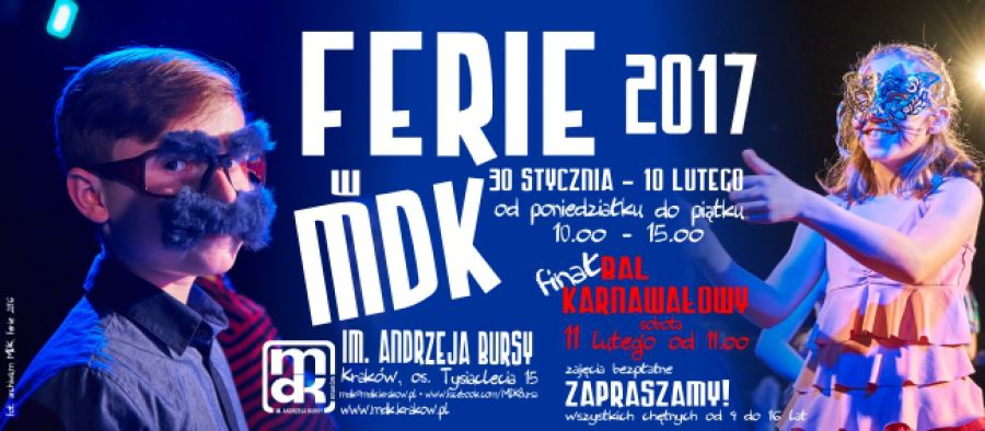 BAL KARNAWAOWY z wodzirejem i licznymi atrakcjami NA ZAKOCZENIE Ferii w Modzieowym Domu Kultury im. Andrzeja Bursy