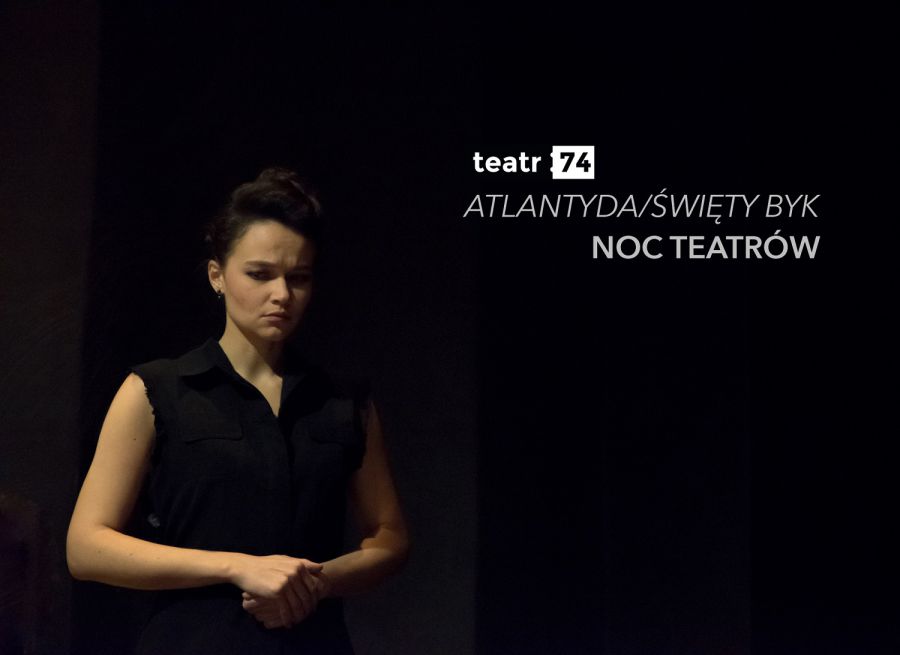Z okazji tegorocznej Nocy Teatrów Teatr74 zaprasza na szczególny pokaz dwóch spektakli naszego zespołu: ze sobš głęboko powišzanych, jednak nigdy wczeniej nie pokazywanych jednego wieczoru. "Atlantyda" i "więty Byk" to przedstawienia na podstawie dramatów Błażeja Tokarskiego (kolejno inspirowanych opowiadaniami Edgara Allana Poe i tragediami Eurypidesa) podejmujšcych rozważania eschatologiczne. Czy jednostkowe przemijanie człowieka jest lub może być powišzane bezporednio z końcem czasów?
